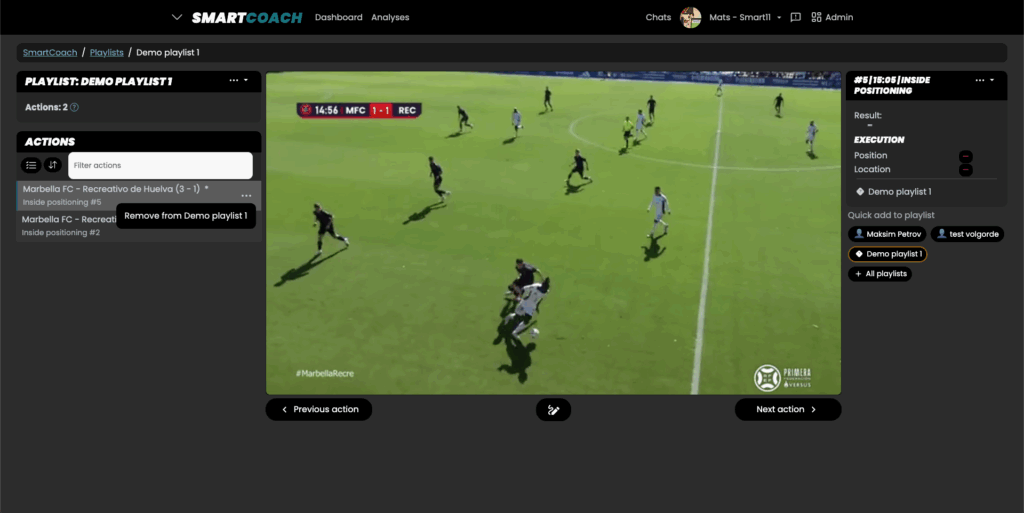 The playlists in SmartCoach allow you to save your favorite clips and have quick access to them at all times. Playlists are designed to be flexible. You can create as many playlists as you want, and add as many clips as you want to every playlist. You can add clips from multiple matches to a playlist.